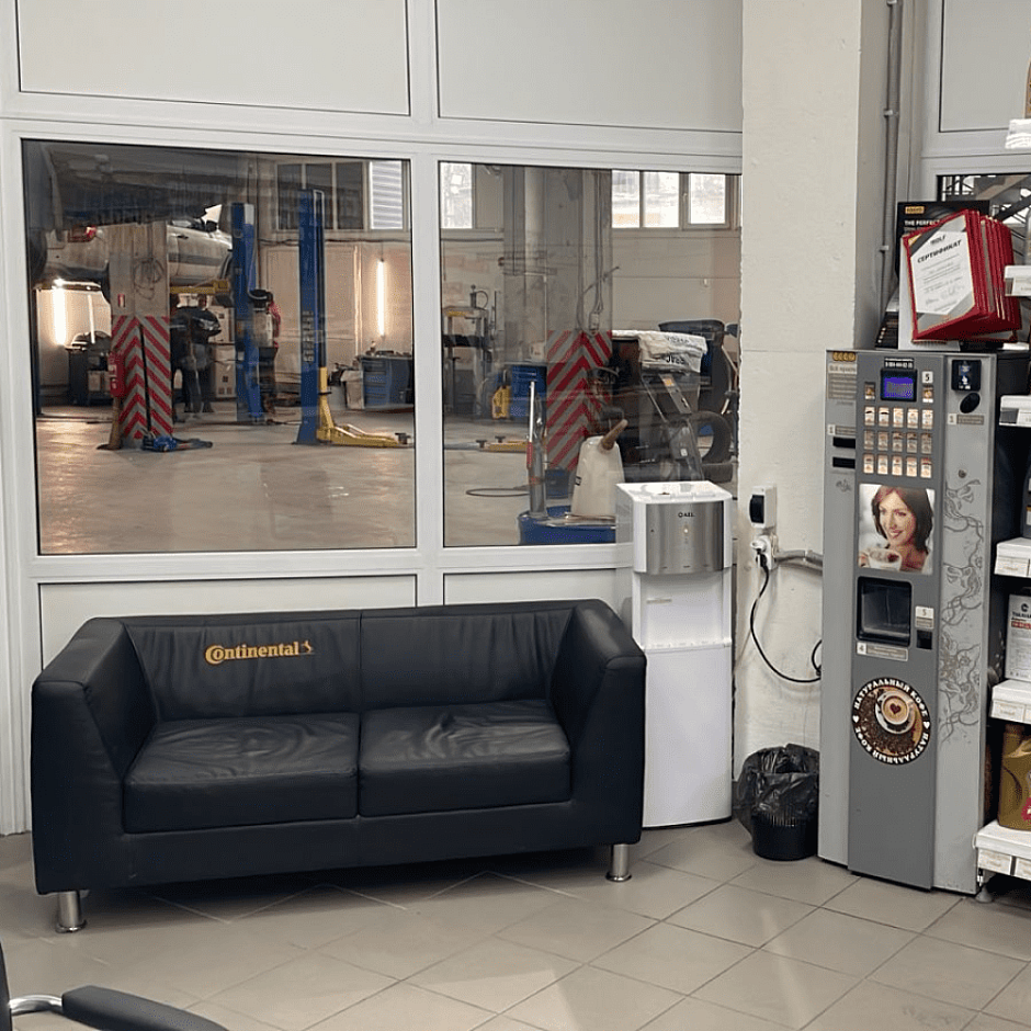 Приятно удивили работой: колеса поменяли оперативно, старые аккуратно упаковали и сложили в багажник. Видно, что мастера работают профессионально. Есть удобная зона ожидания с экраном - можно наблюдать за процессом.