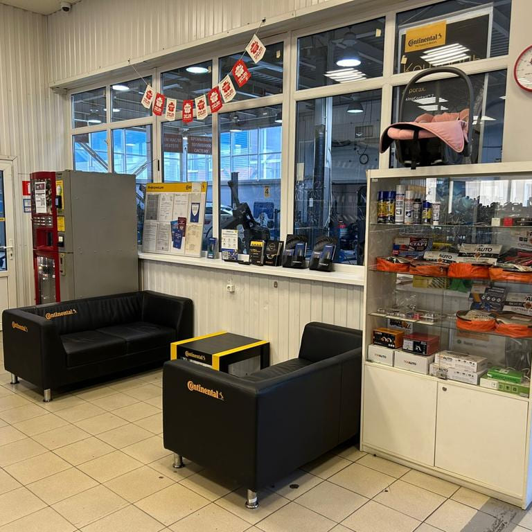 Приятно удивили работой: колеса поменяли оперативно, старые аккуратно упаковали и сложили в багажник. Видно, что мастера работают профессионально. Есть удобная зона ожидания с экраном - можно наблюдать за процессом.