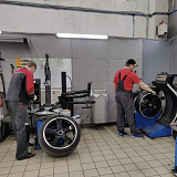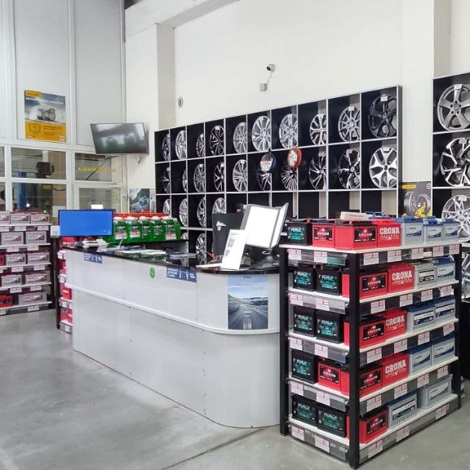 Приятно удивили работой: колеса поменяли оперативно, старые аккуратно упаковали и сложили в багажник. Видно, что мастера работают профессионально. Есть удобная зона ожидания с экраном - можно наблюдать за процессом.