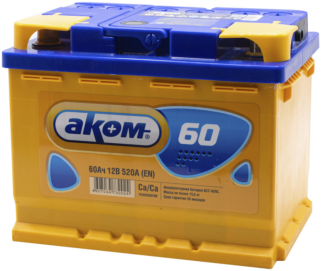 Аналоги аккумулятора AKOM 60 Ач от 590 А обратная полярность низкий тип корпуса