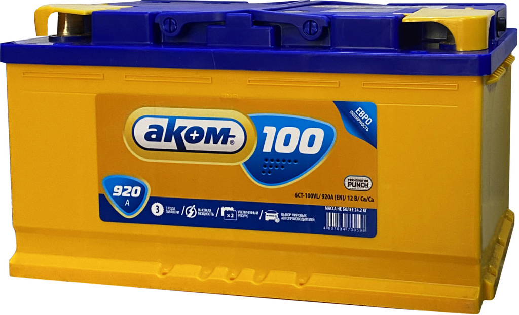 Аналоги аккумулятора AKOM 100 Ач от 920 А обратная полярность европейский тип корпуса