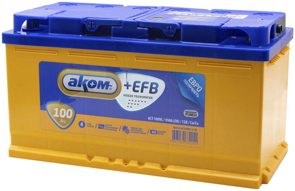 Аналоги аккумулятора AKOM +EFB 100 Ач от 950 А обратная полярность европейский тип корпуса