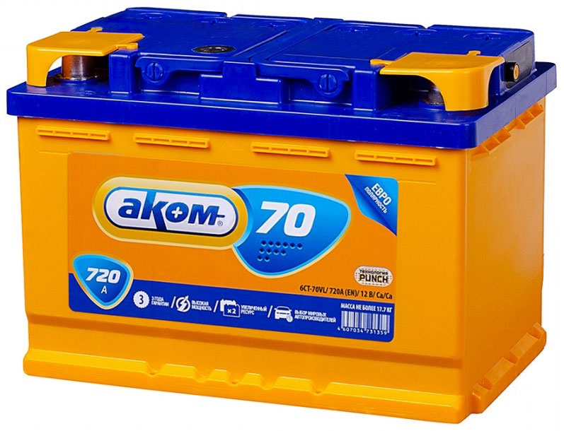 Аккумулятор AKOM 70 Ач 720 А обратная полярность