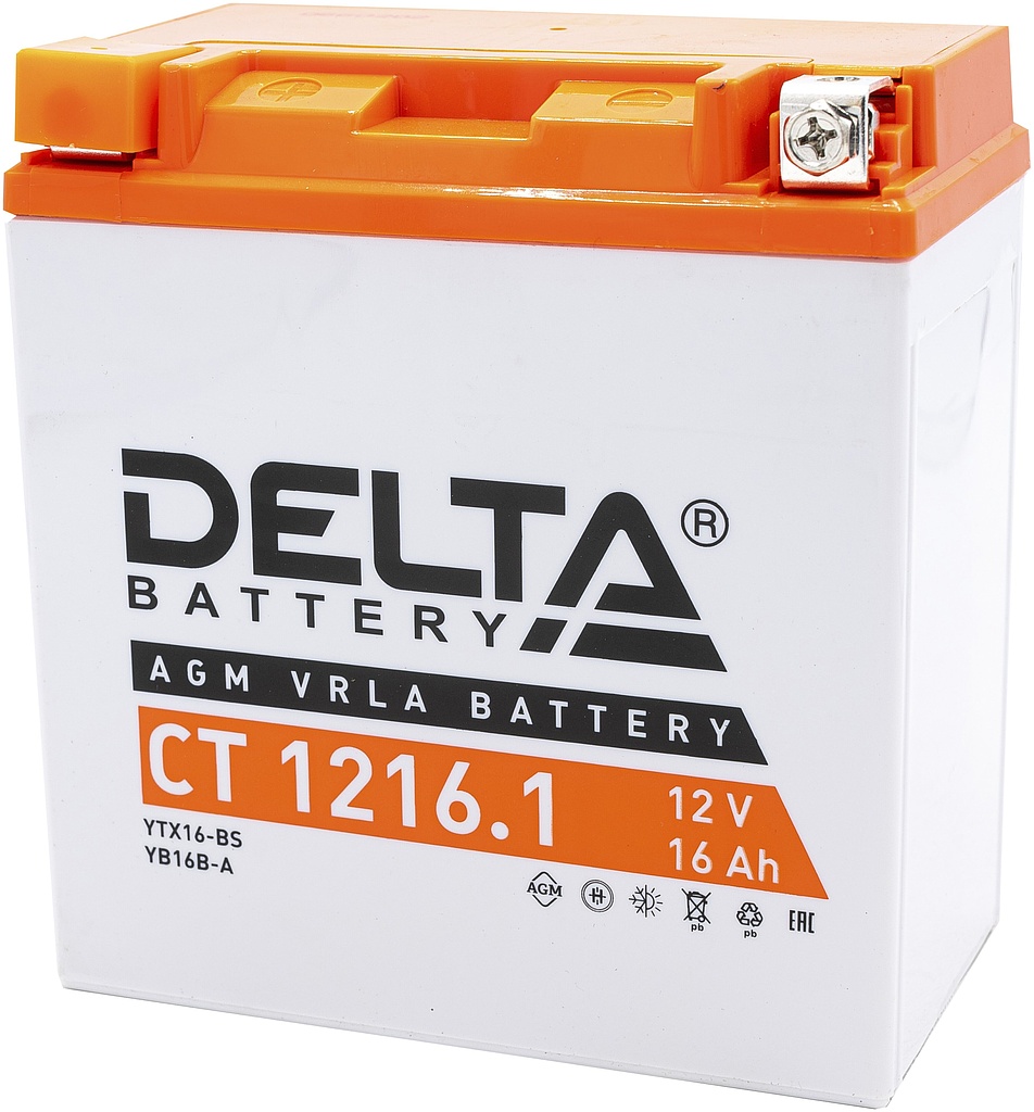 Аккумулятор DELTA CT 1216.1 12V (YTX16-BS, YB16B-A) 16 Ач 230 А прямая полярность