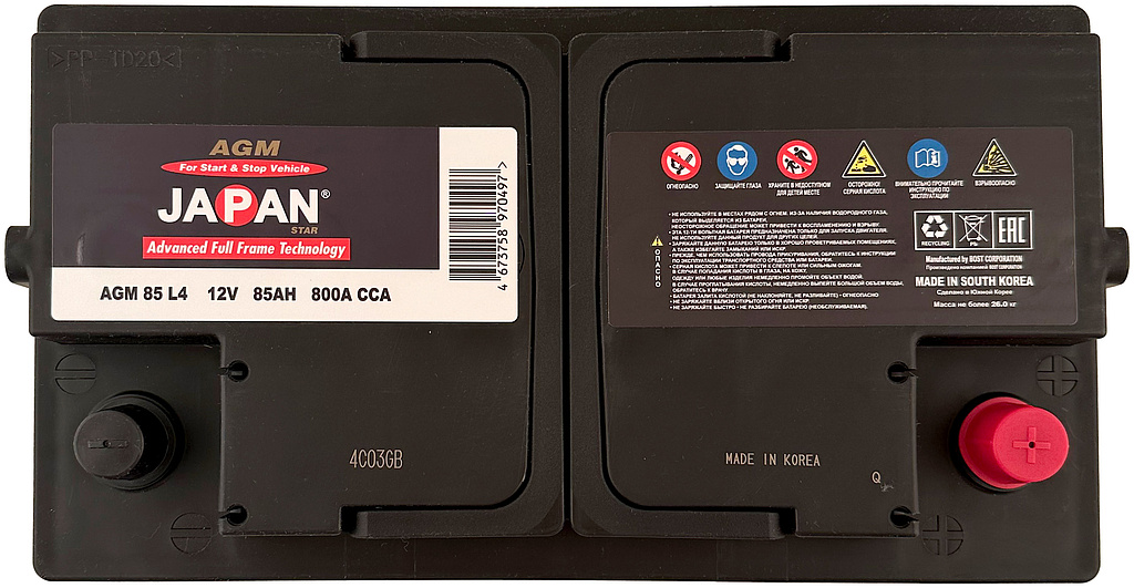 АКБ JAPAN STAR AGM — это надёжное решение для современных автомобилей, где важна стабильность, долговечность и максимальная эффективность при работе всех электронных систем.