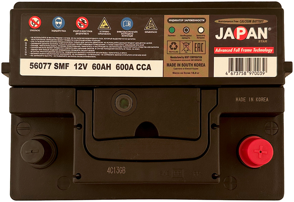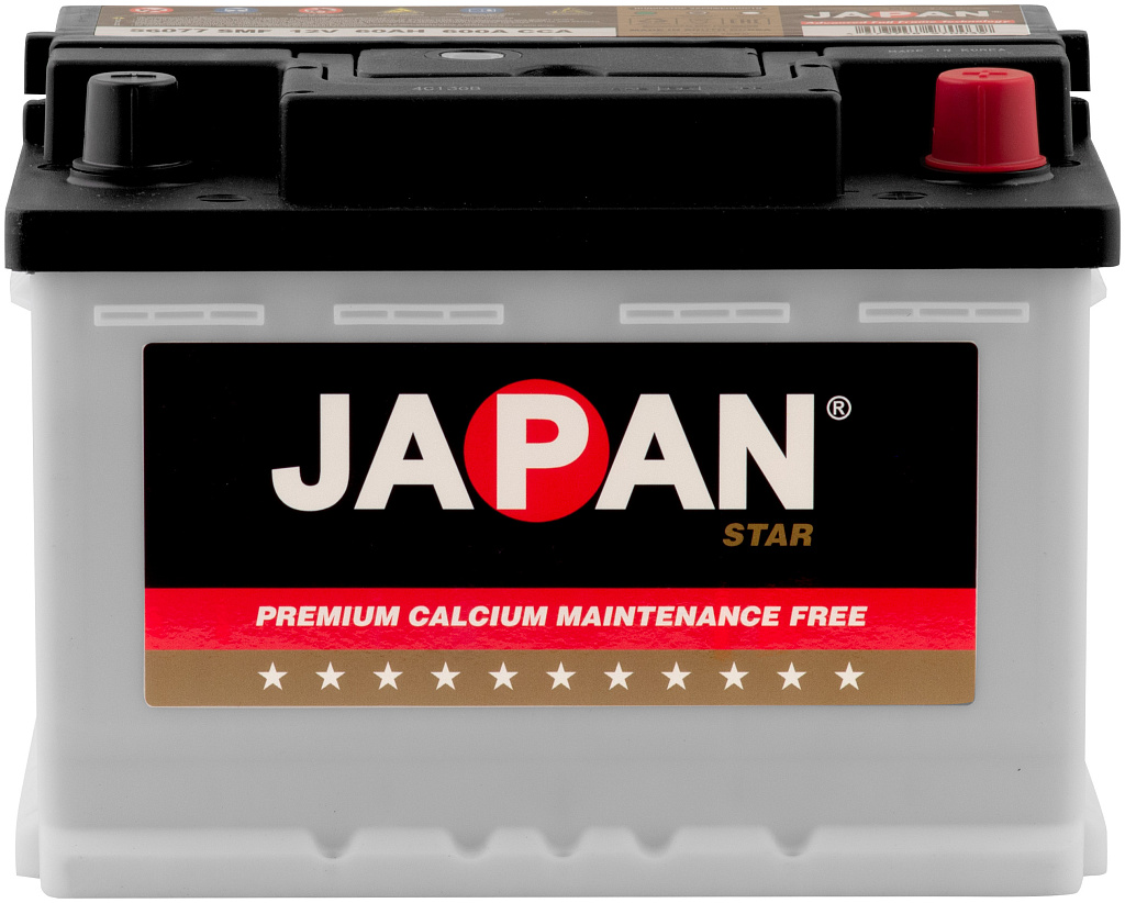 АКБ JAPAN STAR SMF — прочный и надёжный аккумулятор, который обеспечивает уверенный запуск двигателя и стабильную работу всех электрических систем автомобиля на протяжении многих лет.