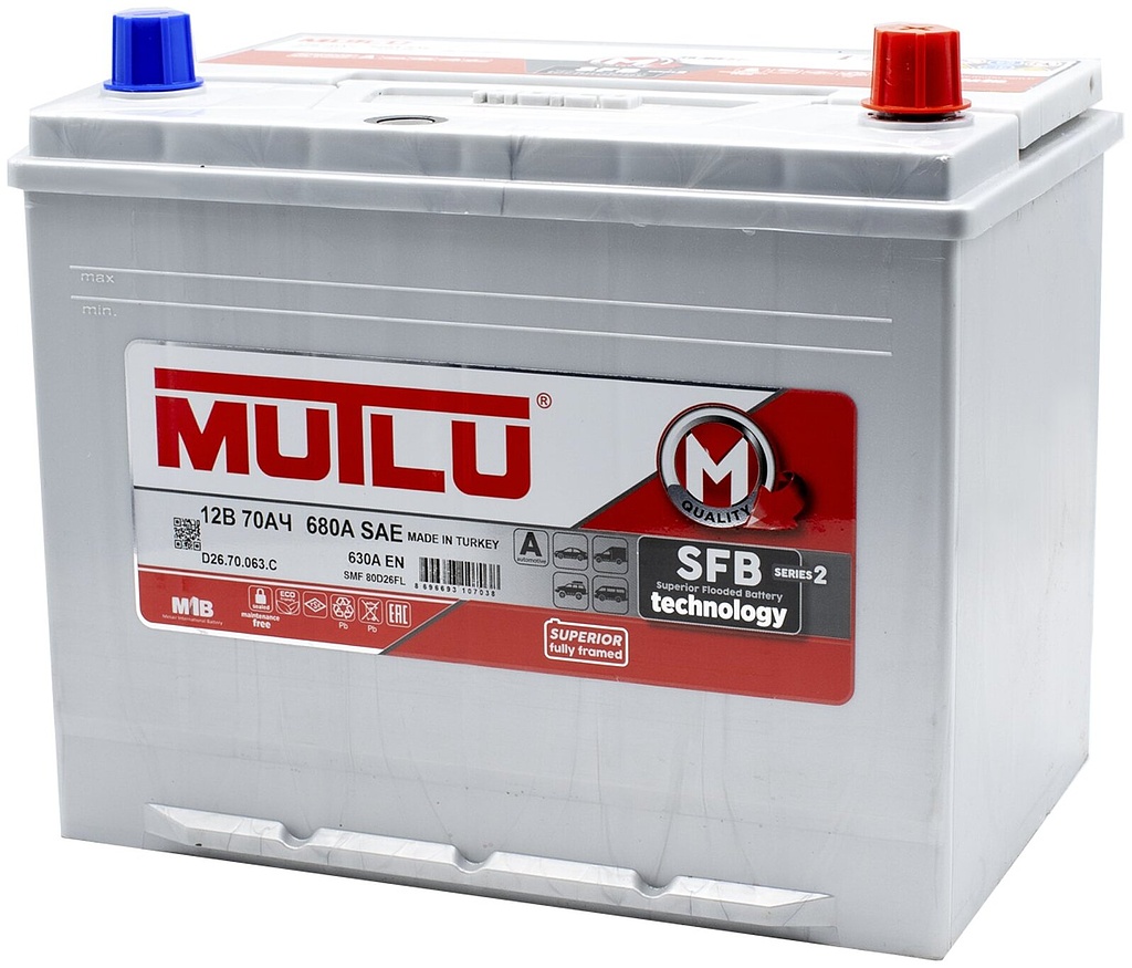 Аналоги аккумулятора MUTLU Asia SFB M2 70 Ач от 630 А обратная полярность азиатский тип корпуса