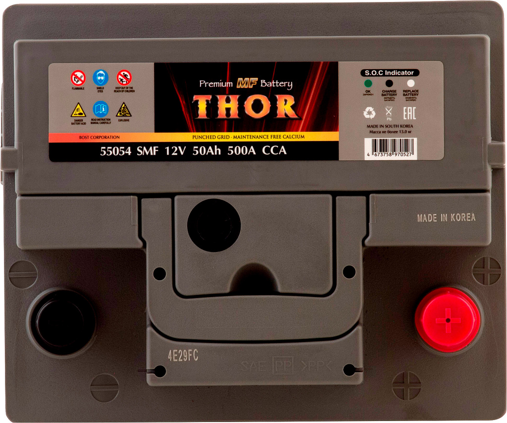 Аналоги аккумулятора THOR 55054 SMF 50 Ач от 500 А обратная полярность европейский тип корпуса