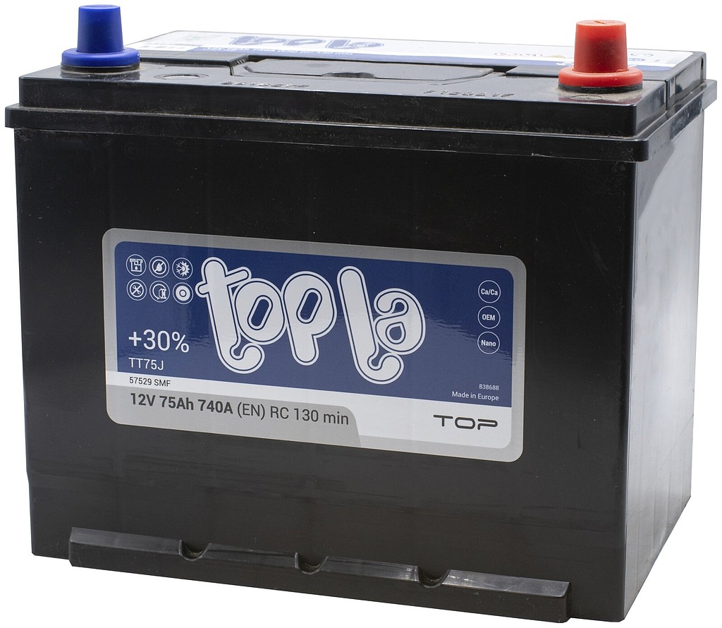 Автомобильный аккумулятор Topla Asia Top (Top Sealed JIS) производится в Словении на заводе концерна TАV (г. Межица). Эта аккумуляторная батарея относится к полностью необслуживаемым и сохраняет стабильные характеристики в течение всего срока эксплуатации.
