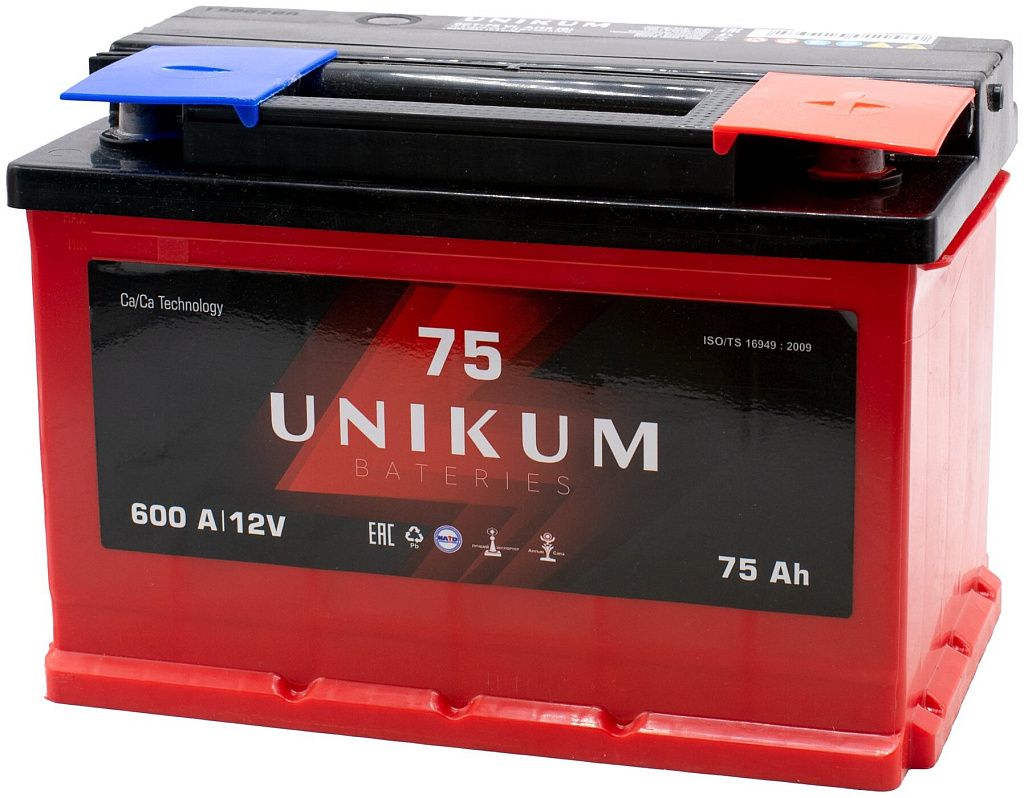Аналоги аккумулятора UNIKUM 75 Ач от 600 А обратная полярность европейский тип корпуса
