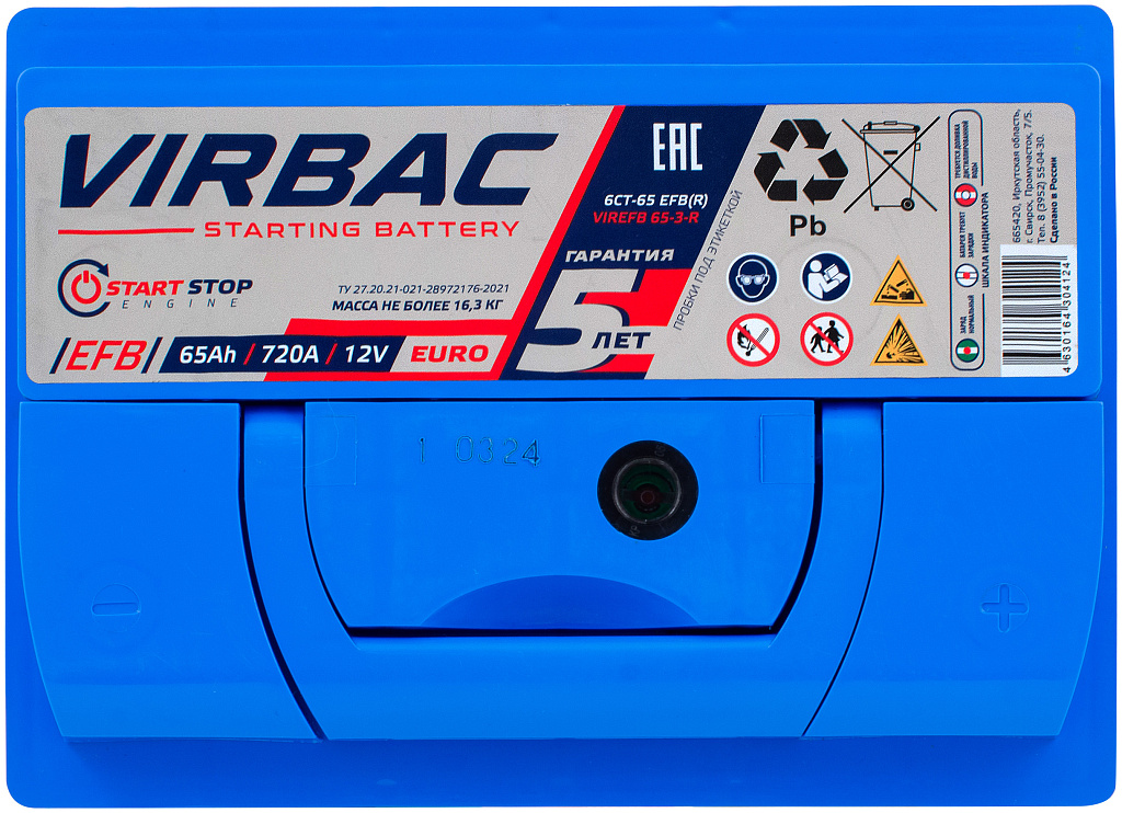 Аккумуляторы VIRBAC EFB производятся компанией ООО «АкТех» (г. Свирск) и относятся к категории улучшенных батарей с жидким электролитом. Эта технология (Enhanced Flooded Battery) обеспечивает повышенную устойчивость к циклам зарядки и разрядки, делая АКБ VIRBAC EFB идеальным решением для современных автомобилей, включая модели с системой Start-Stop.