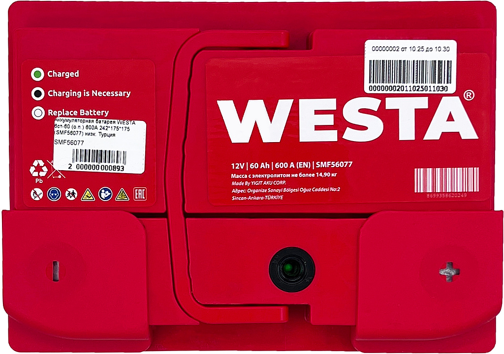 Аналоги аккумулятора WESTA SMF56077 60 Ач 600 А обратная полярность низкий тип корпуса
