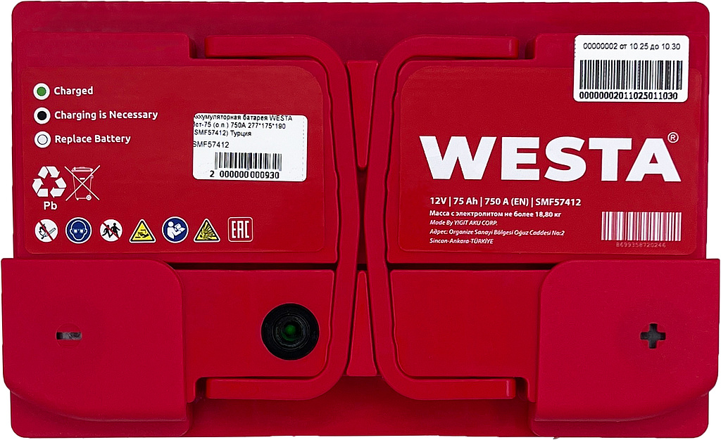 Аккумулятор WESTA SMF57412 75 Ач 750 А обратная полярность