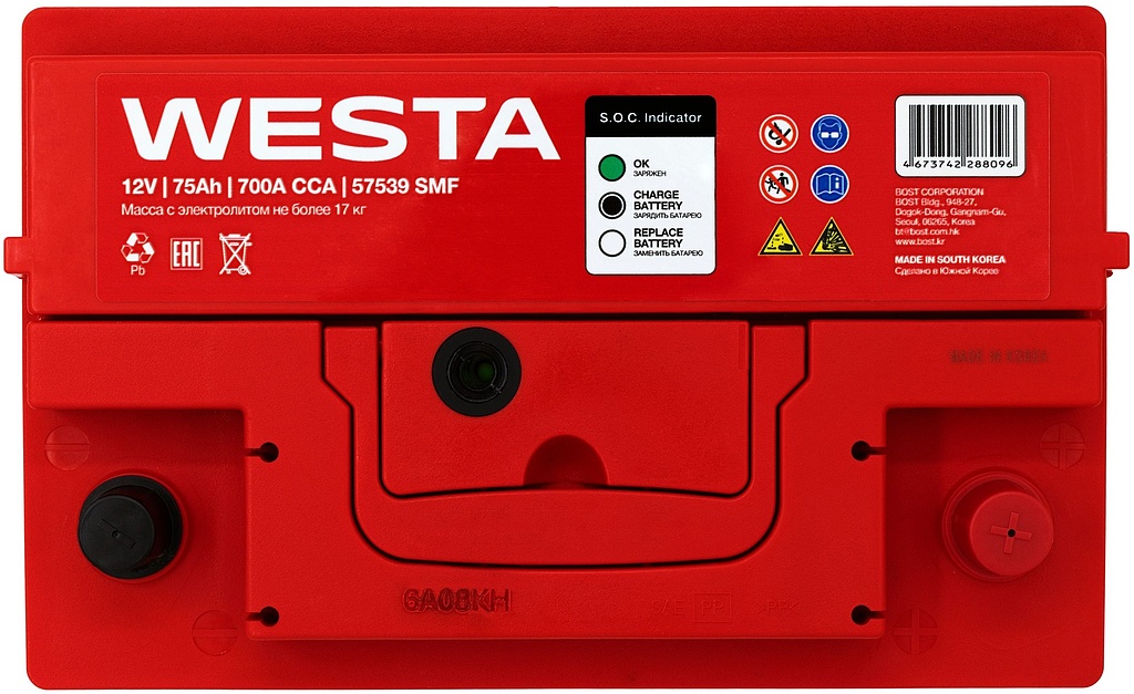Аккумулятор WESTA SMF57539 74 Ач 700 А обратная полярность