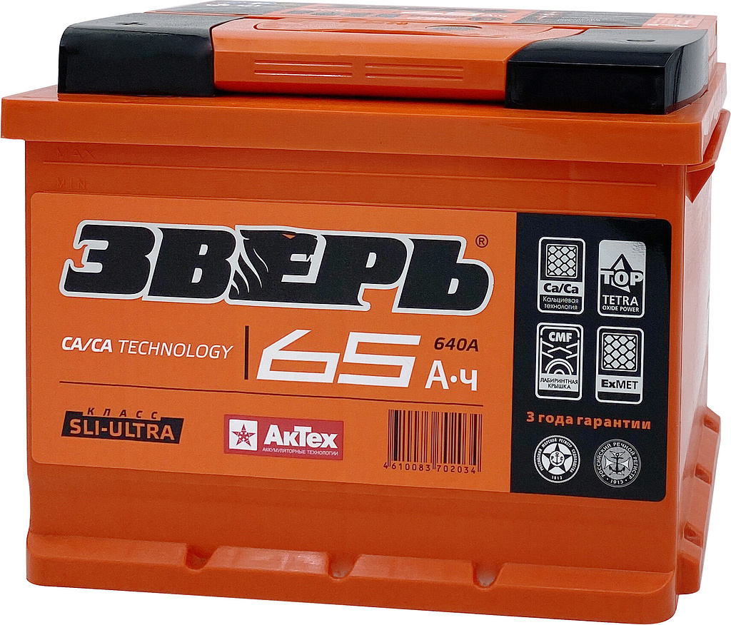 Аккумулятор ЗВЕРЬ 65 Ач 640 А прямая полярность