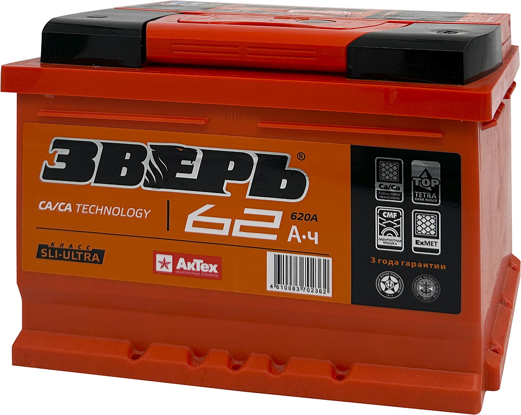 Аккумулятор ЗВЕРЬ 62 Ач 620 А обратная полярность