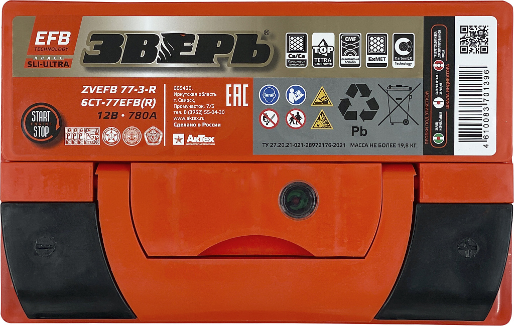 Аналоги аккумулятора ЗВЕРЬ EFB 77 Ач от 780 А обратная полярность европейский тип корпуса